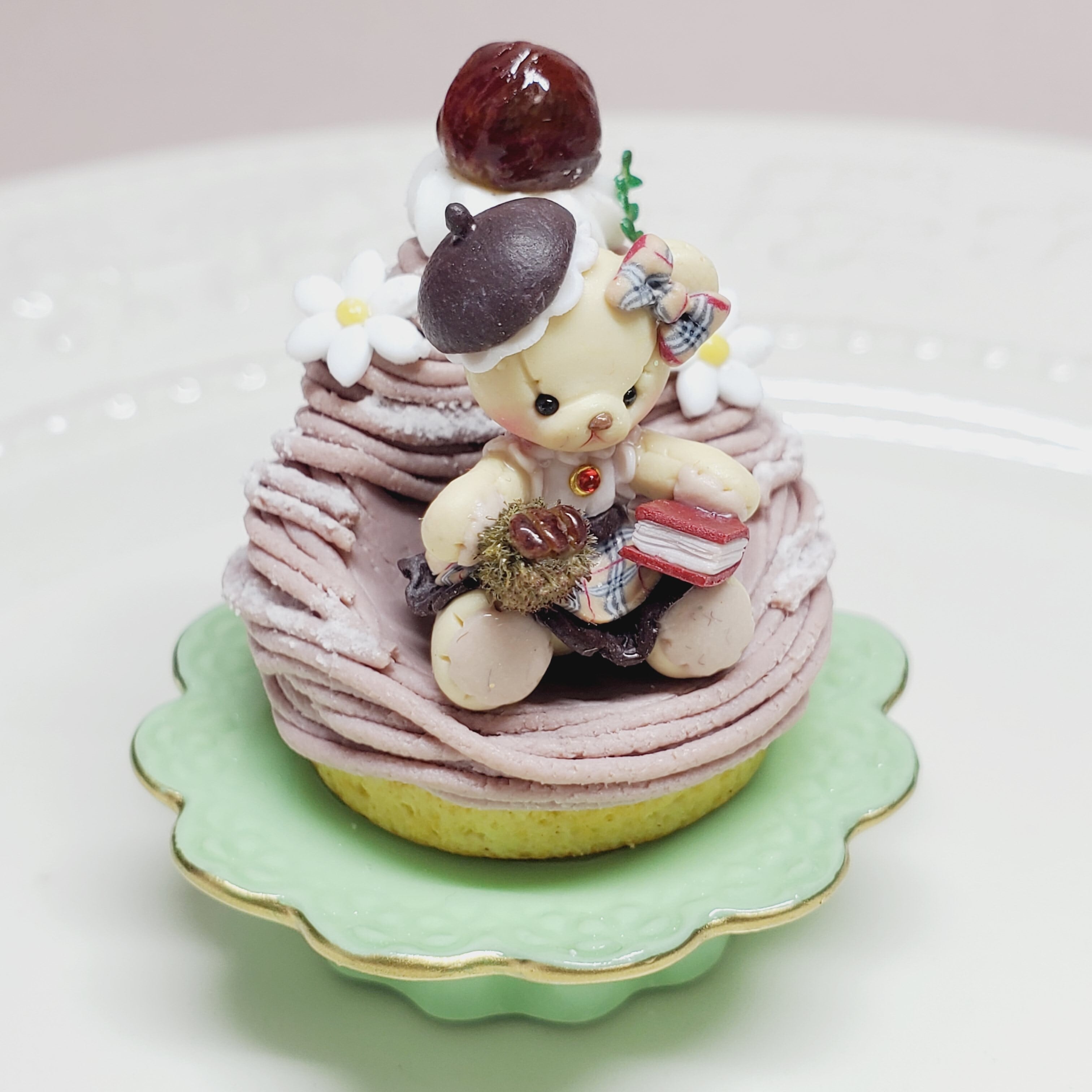 テディベアとマロンケーキソファのセット −ミニチュアスイーツ−
