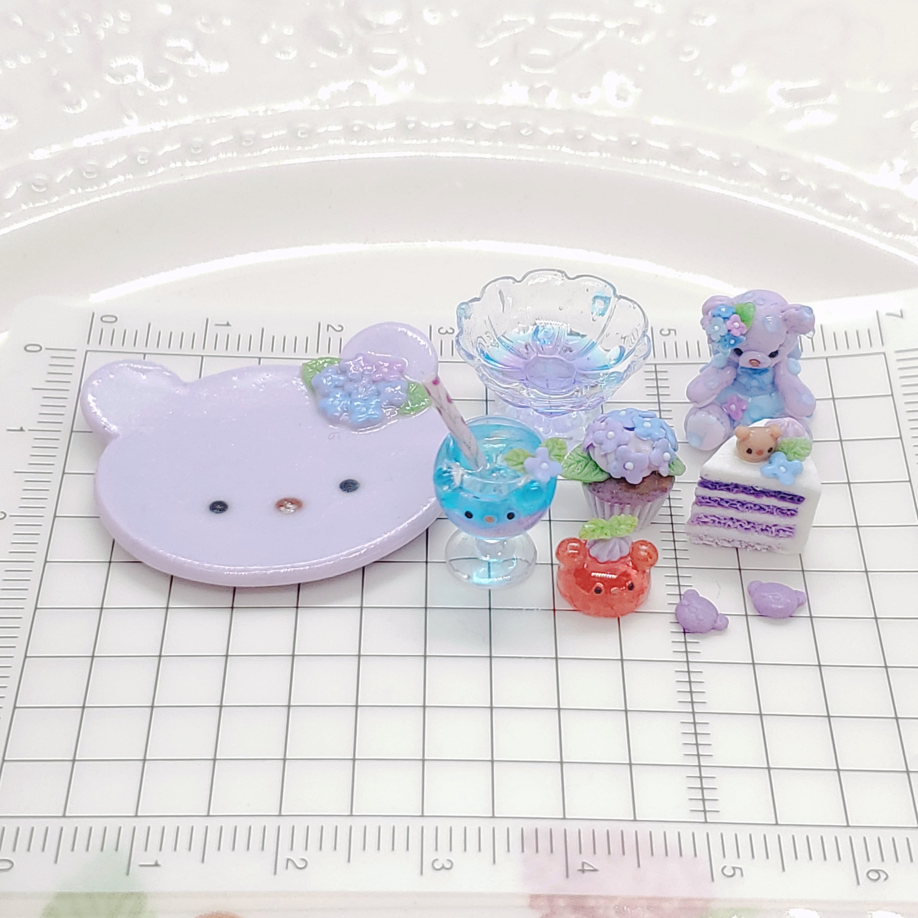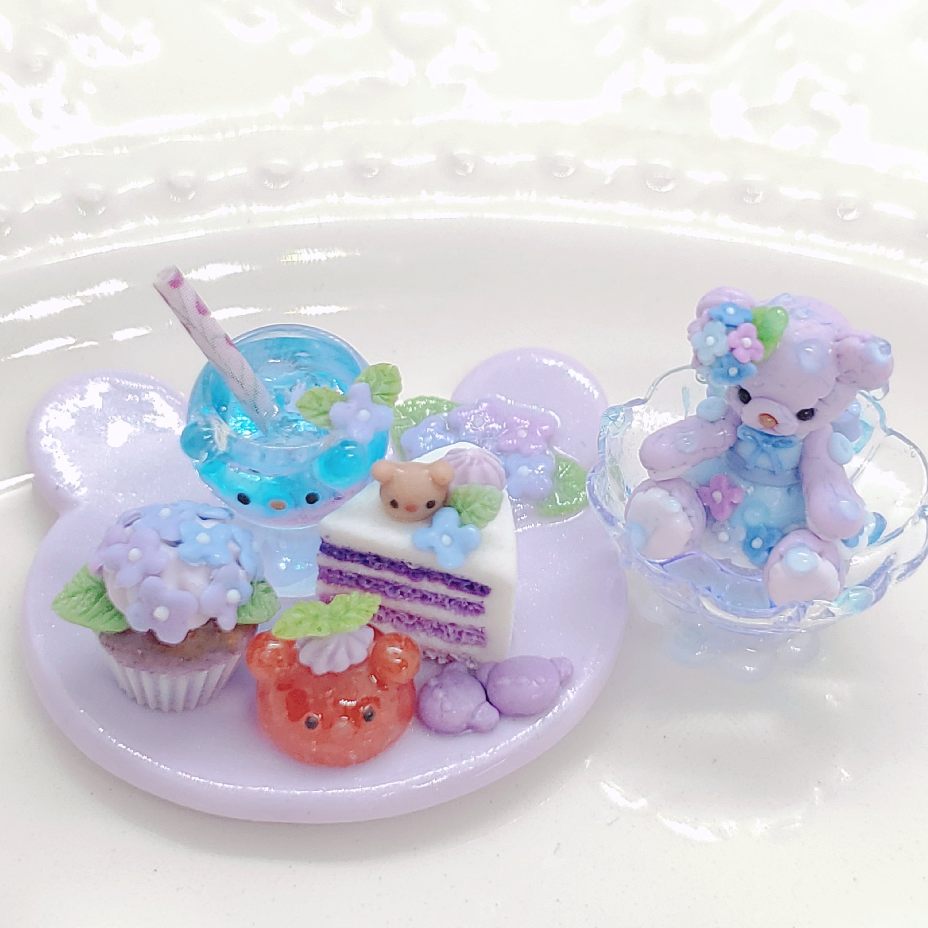 クマ×紫陽花✼スイーツプレート −ミニチュアスイーツ−